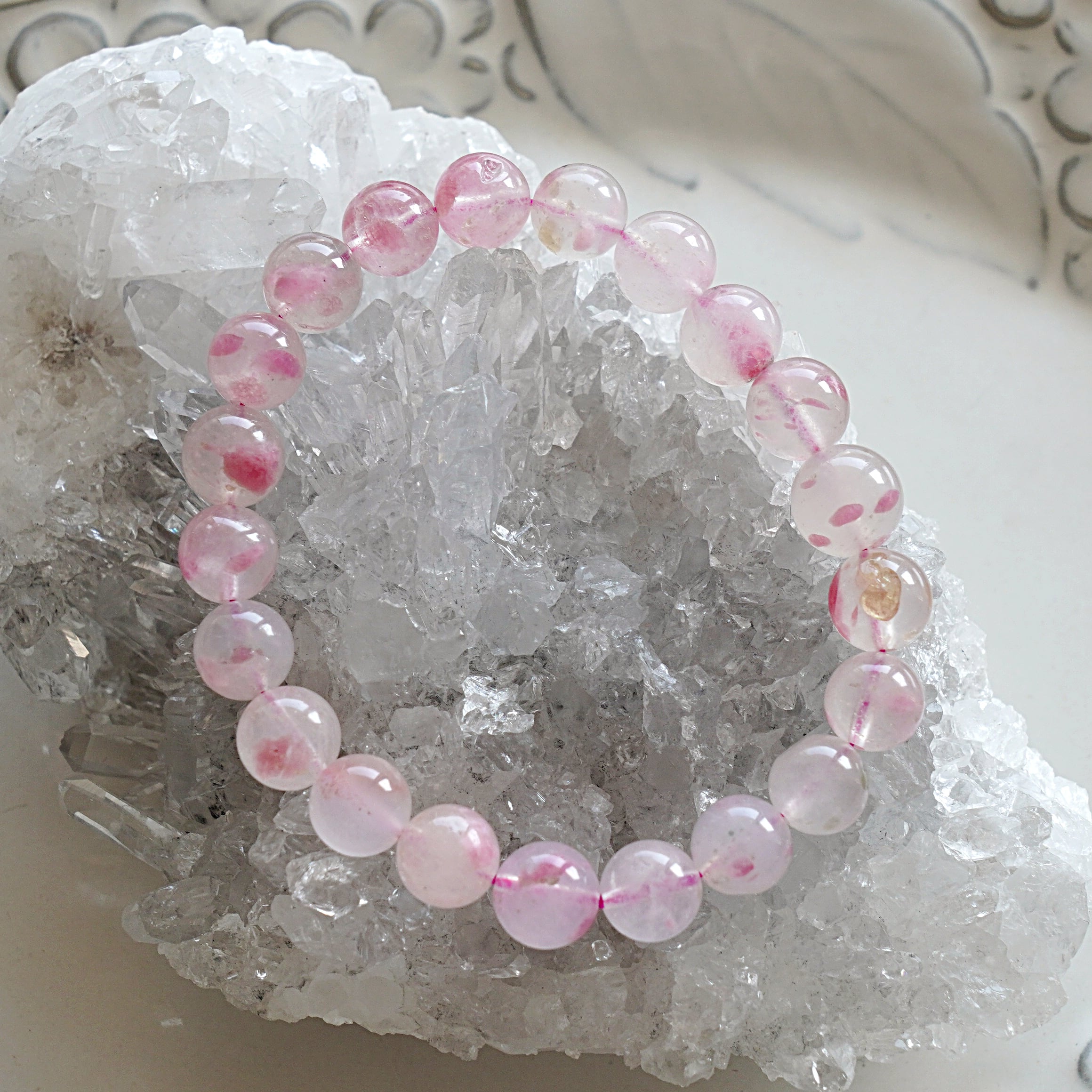 【恋愛・人間関係・癒し】レア石☆優桜色ロードナイトシリカ9mm珠ブレスレット(1点もの)