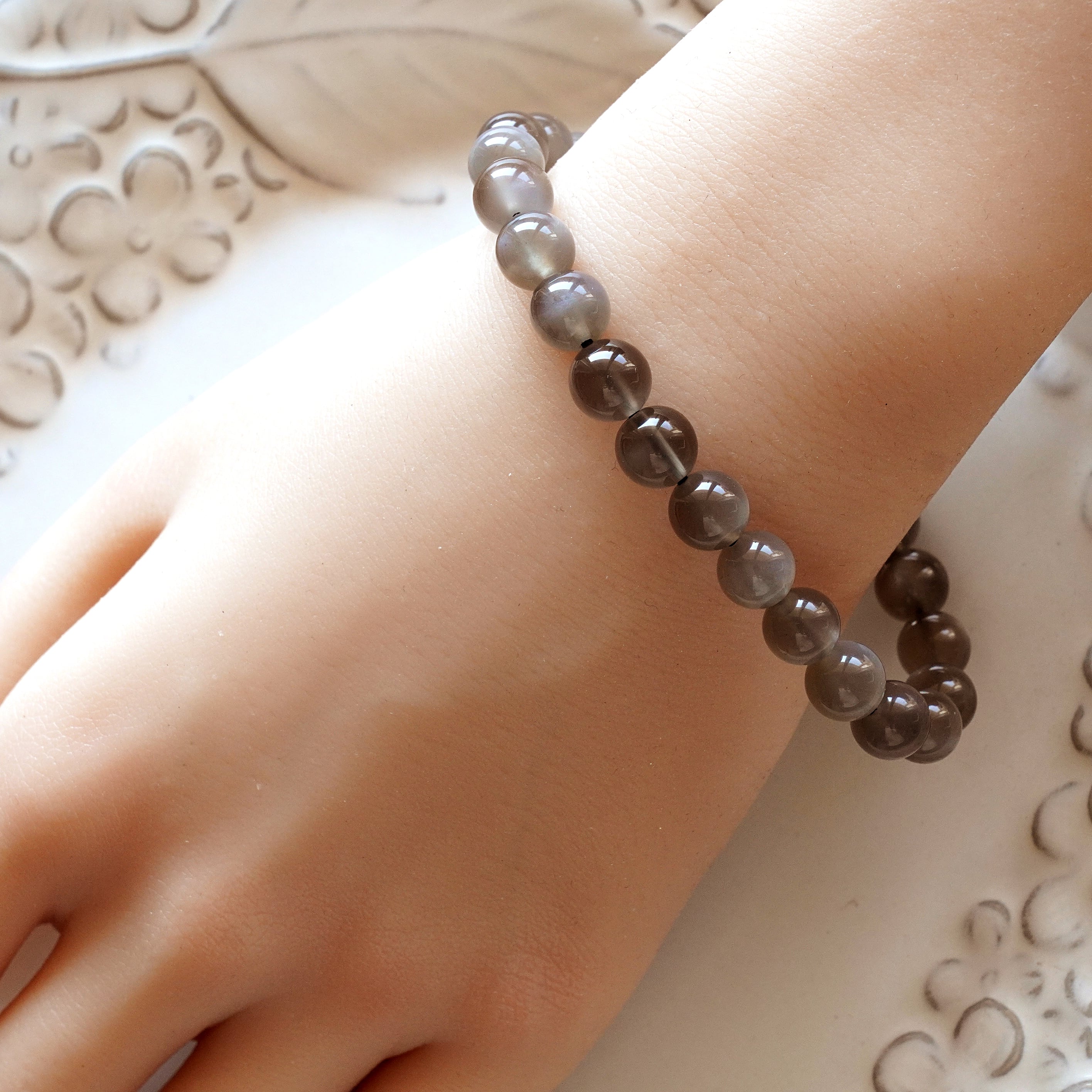 【恋愛・金運仕事・人間関係】希少カラー☆グレームーンストーン 7.5mm珠ブレスレット(1点もの)