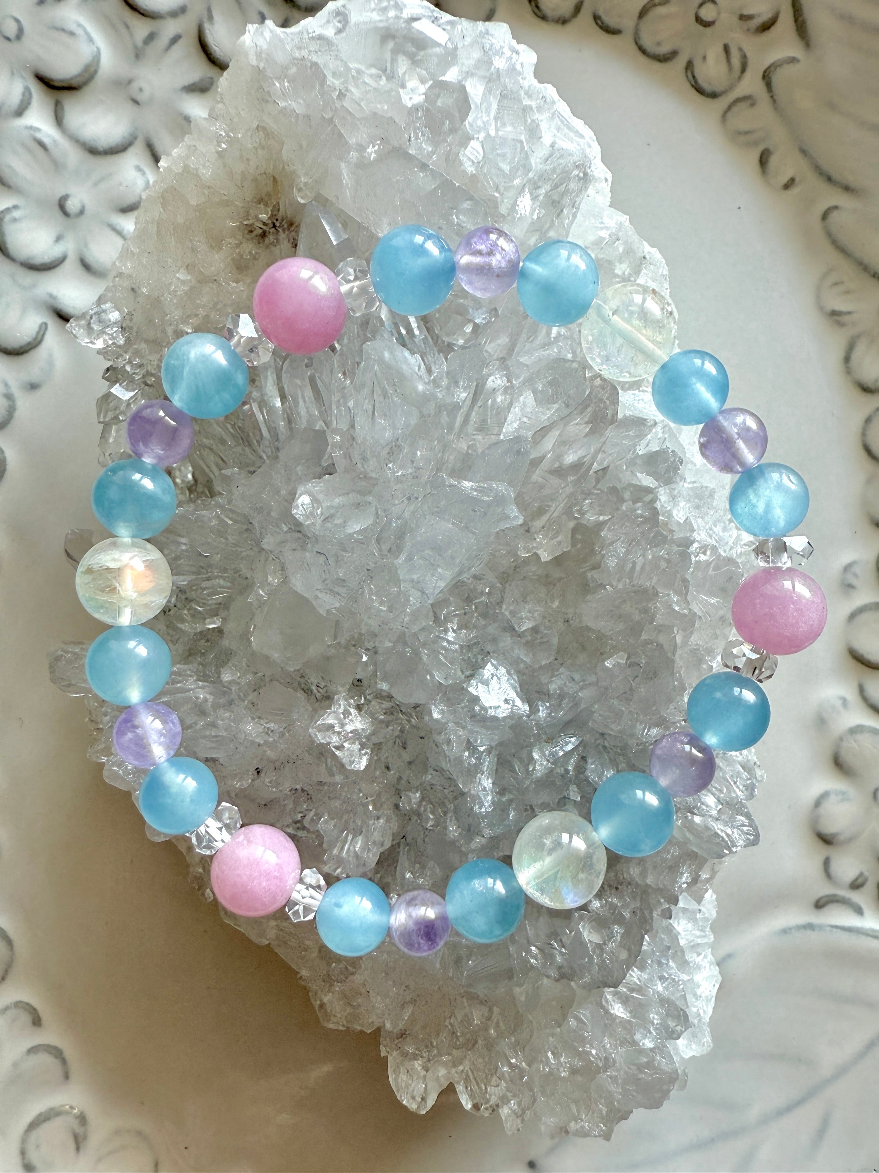 商談中☆フルオーダーブレスレット☆アクアマリン・クンツァイト・ラベンダーアメジスト・レインボームーンストーン・ボタンカット水晶