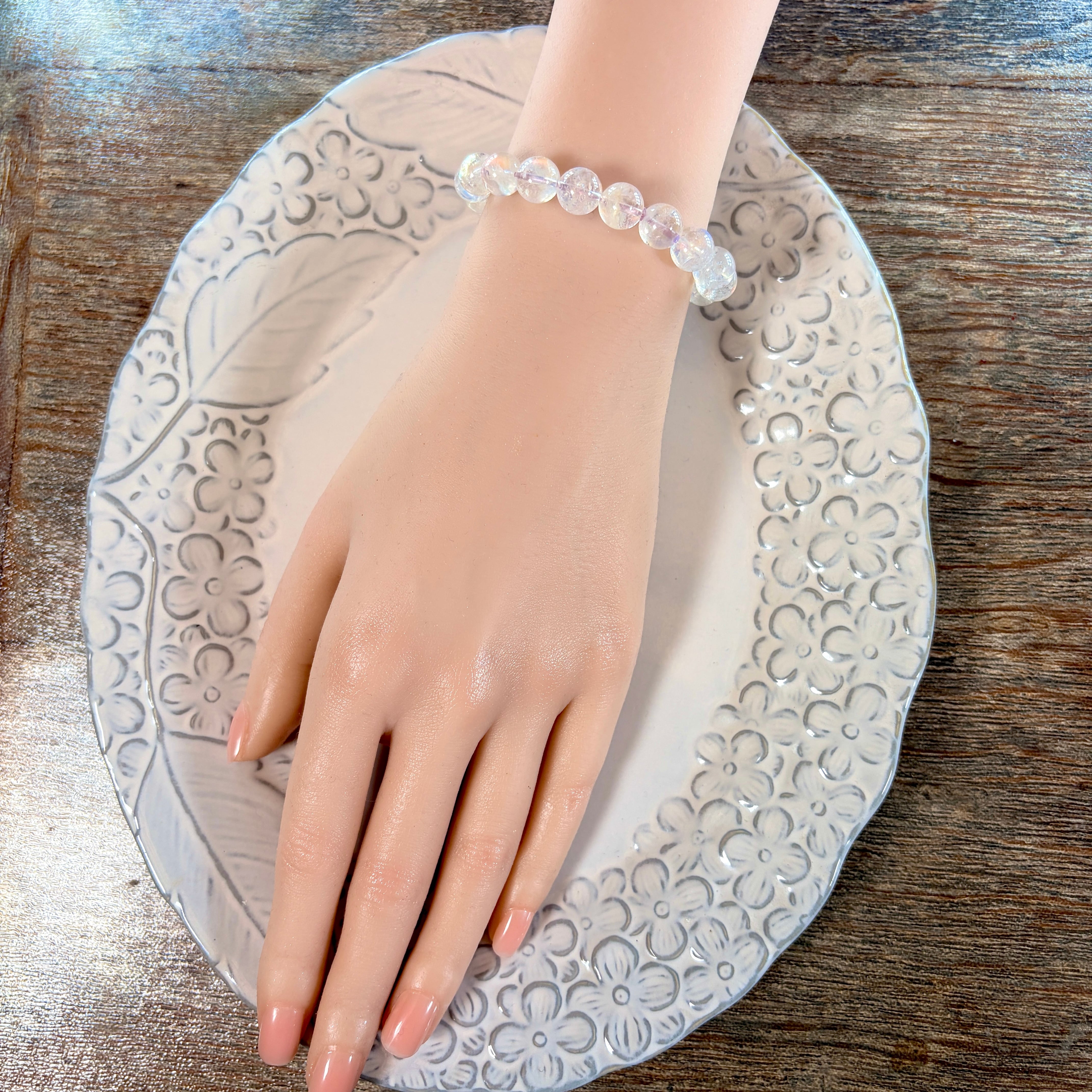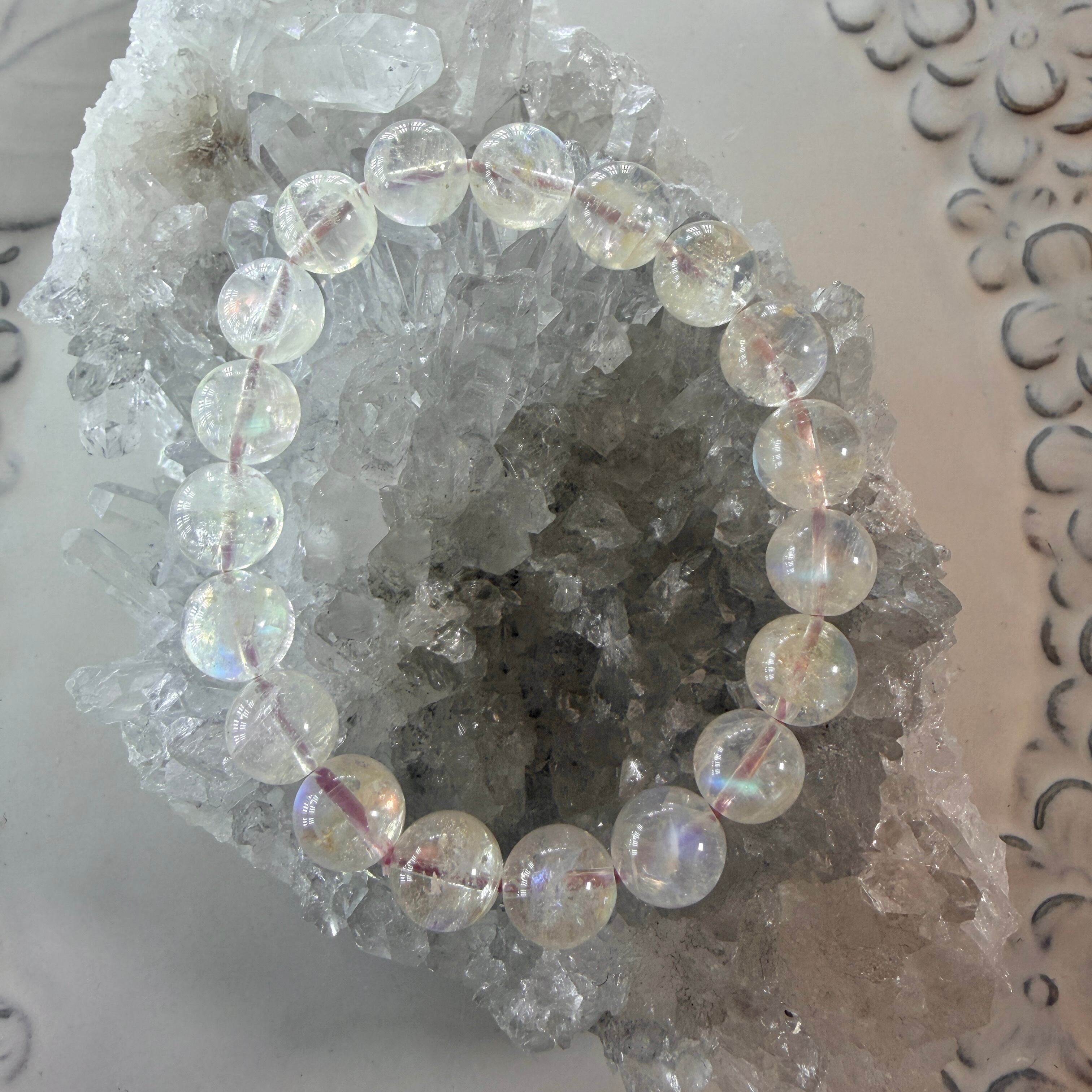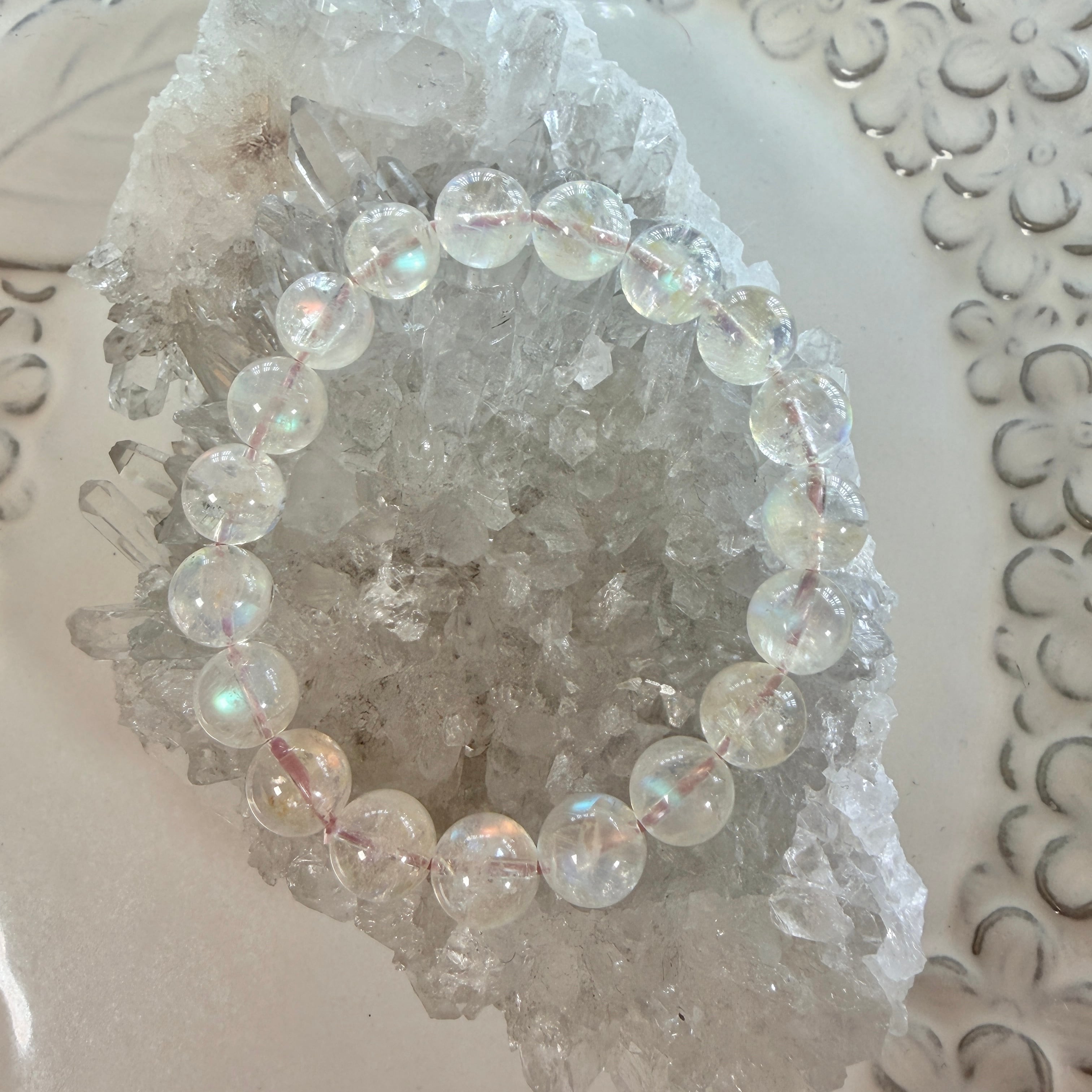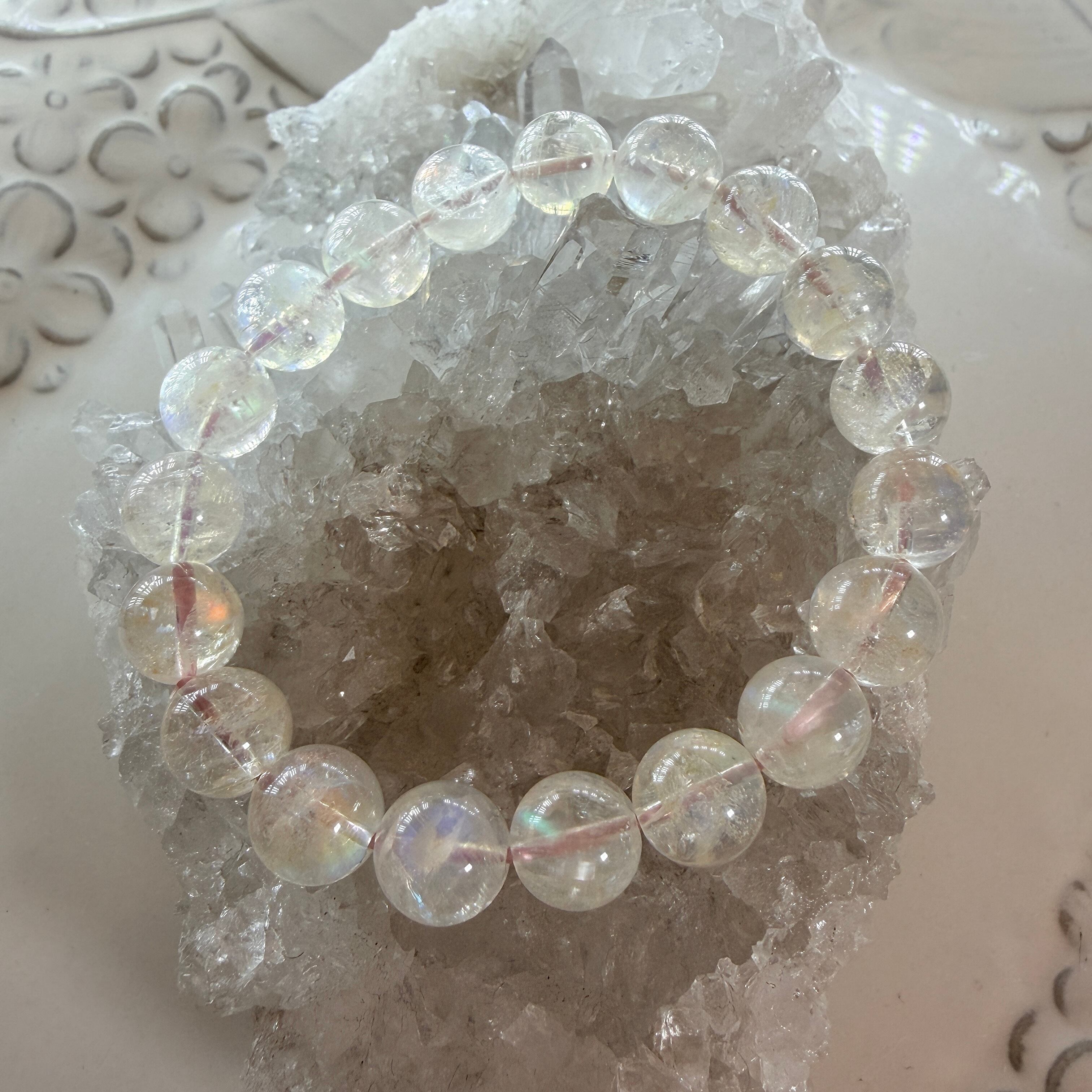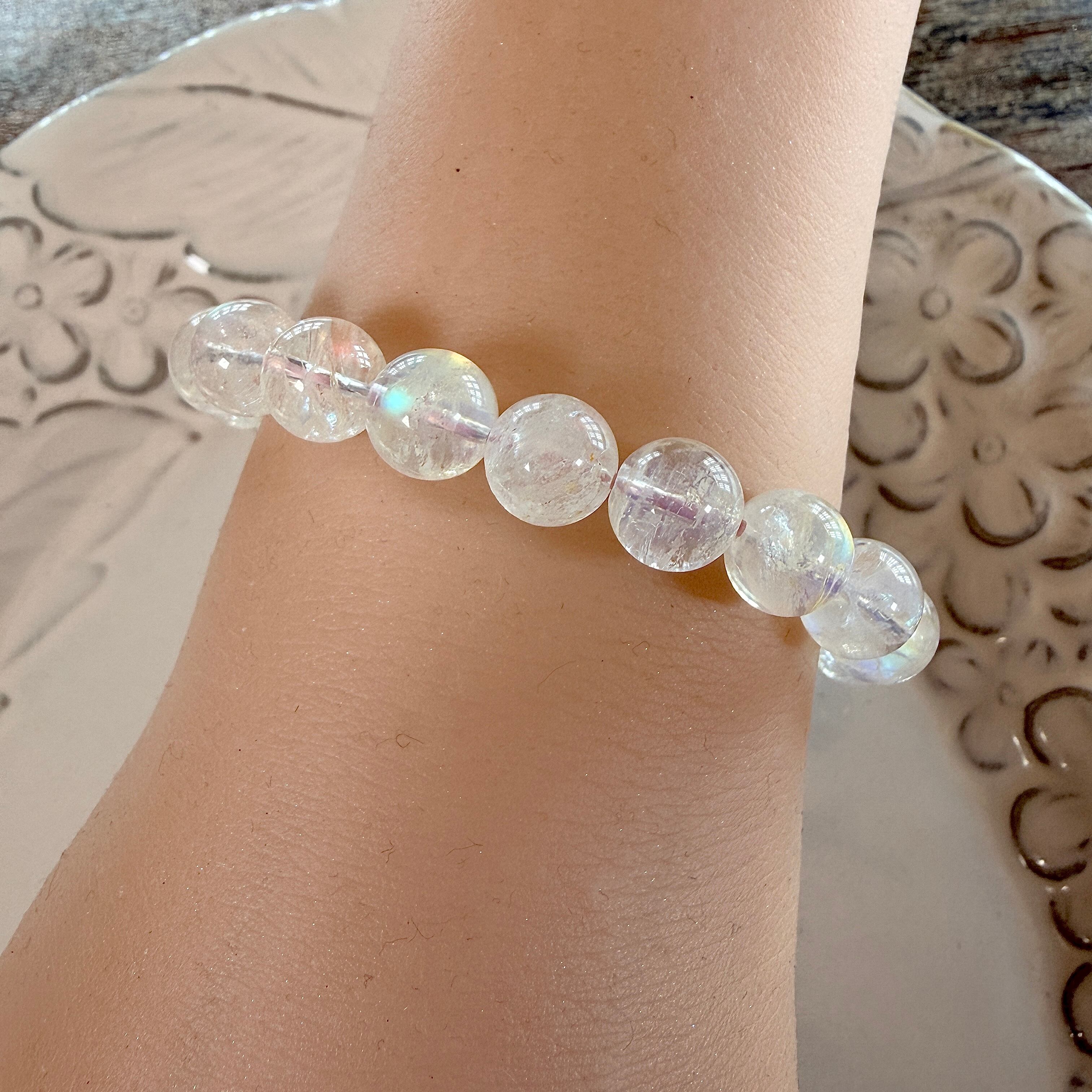 【恋愛・人間関係・金運仕事運】全珠虹色☆AAAAA☆マダガスカル産オーロラシラーレインボームーンストーン8.5mm珠ブレスレット(1点もの)
