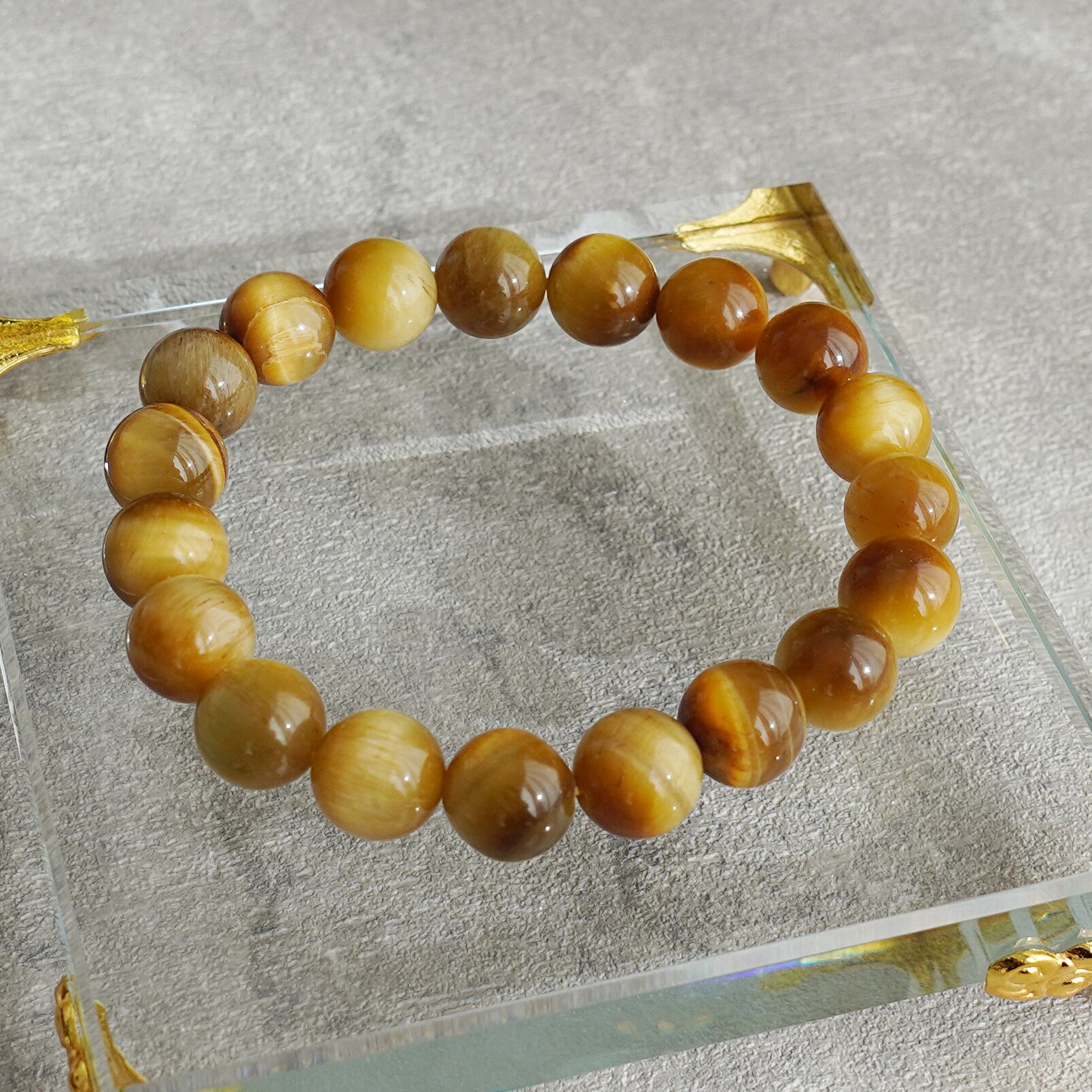 桐箱入りの美しいゴールデンタイガーアイの10mm玉ブレスレットです。