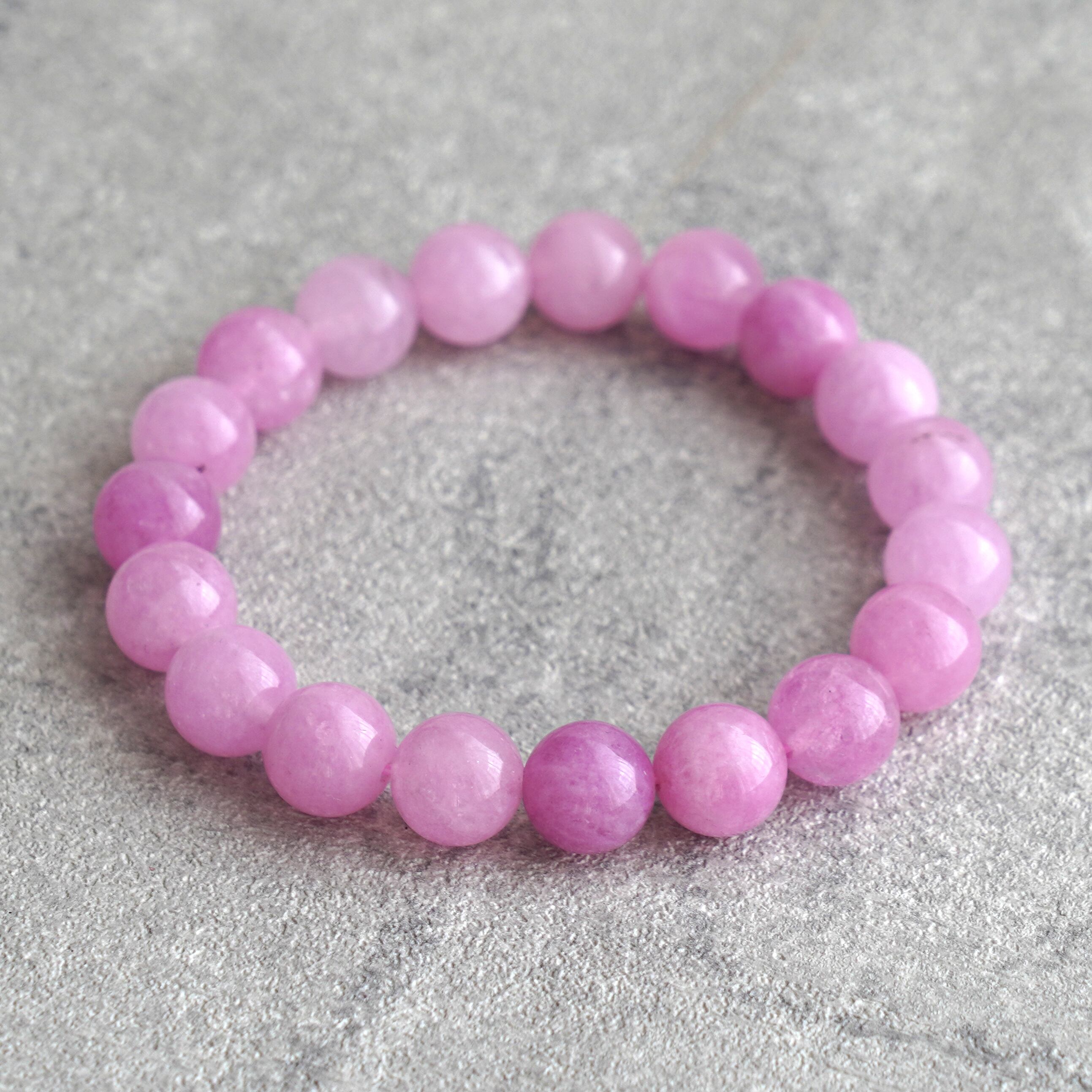 濃厚発色がレアなクンツァイトの10mm玉ブレスレットをセレクトしました。