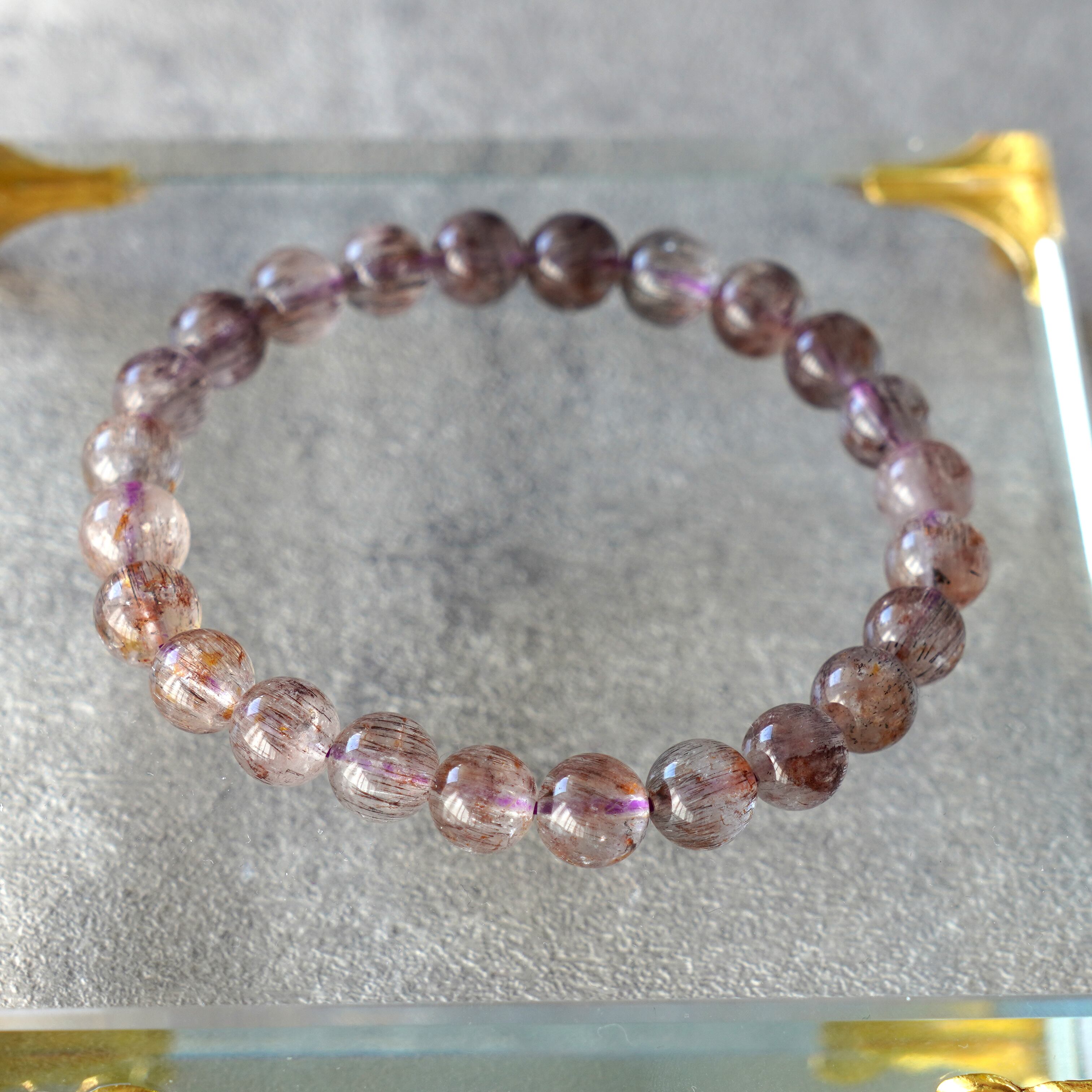 桐箱入りのブラジル産スーパーセブンの7.5mm玉ブレスレットです。