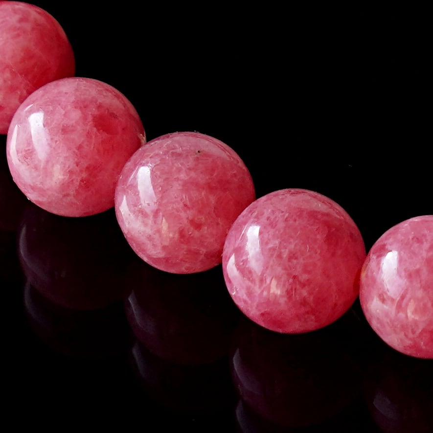 ロードナイトの発色は濃い赤から淡いピンクまで様々ありますが、品質が最上級のものは鮮やかな赤色で透明感があります。