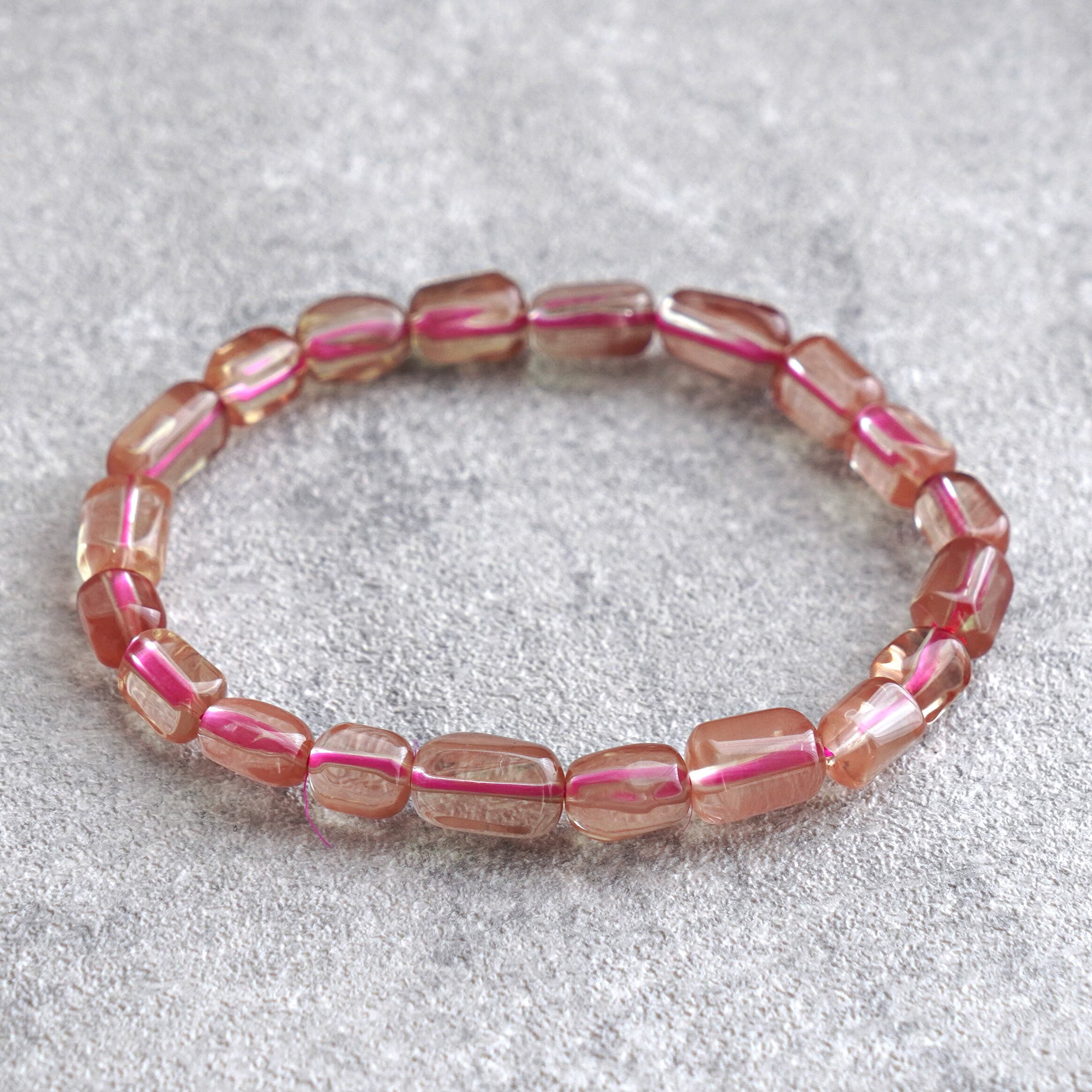 桐箱入りのチベット産のアンデシンのブレスレット、透明感抜群でまろやかで優しい雰囲気が漂う朱色です。