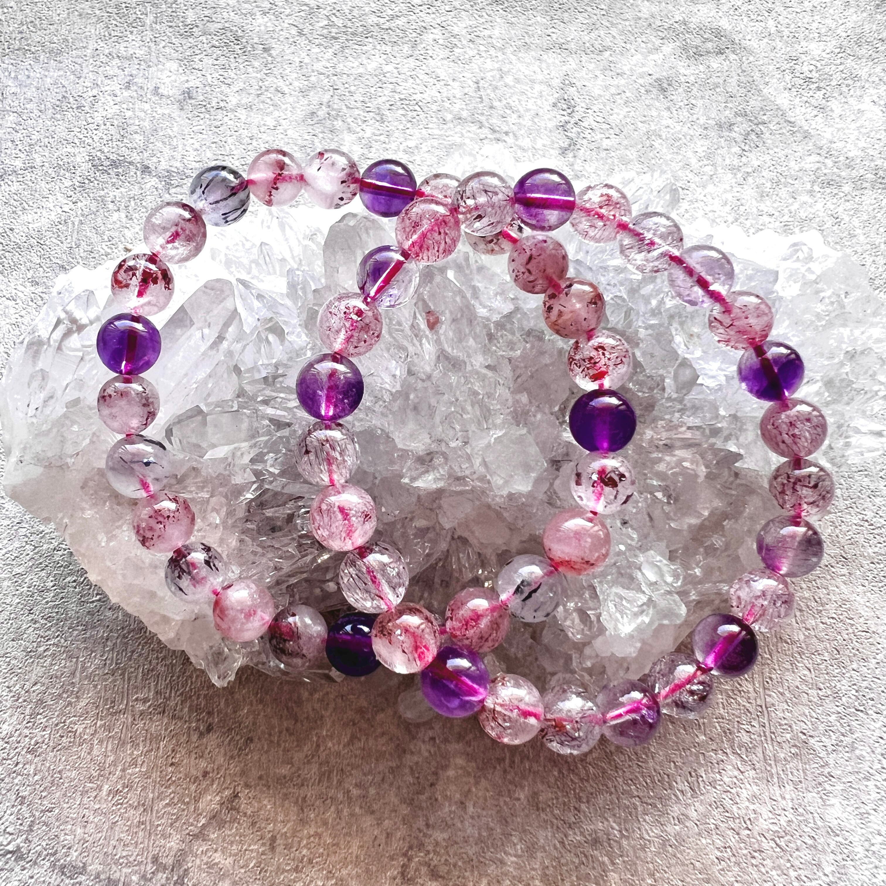 1点物【強力浄化・金運・仕事運】8mm珠マルチカラースーパーセブンブレスレット(桐箱入り