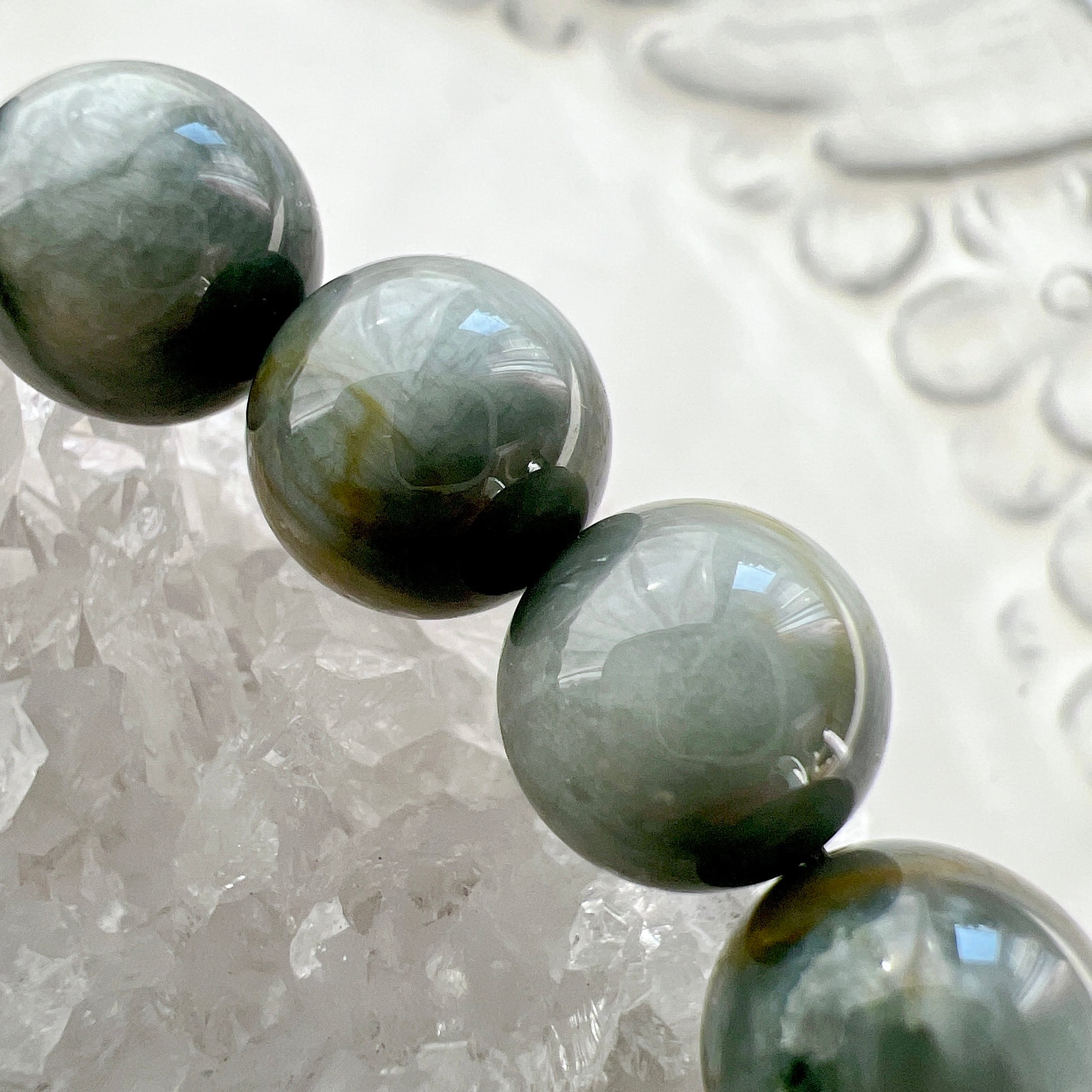 存在感のある10.5mm珠ですがシックなカラーが男性にも女性にも似合います。