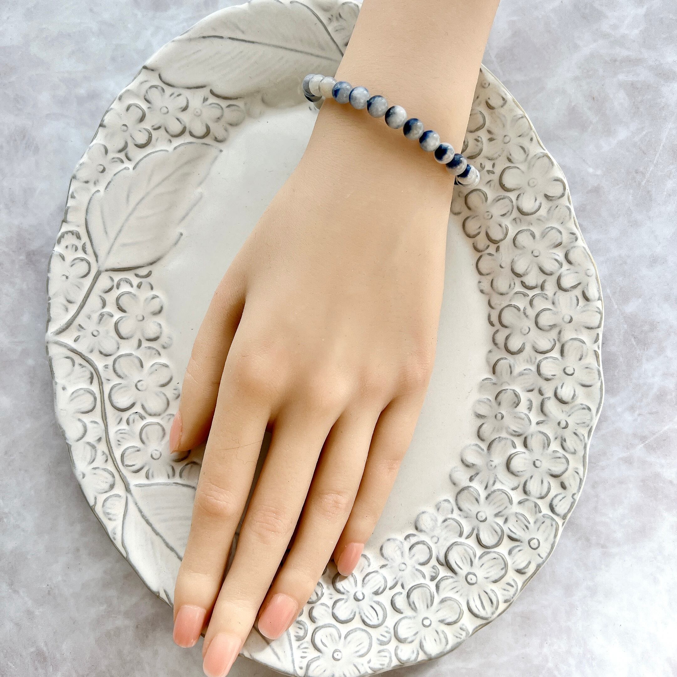 【自己実現・幸運】希少石☆雪原に咲く青い花☆デュモルチェライトインクォーツ6.5mm珠ブレスレット(1点もの)