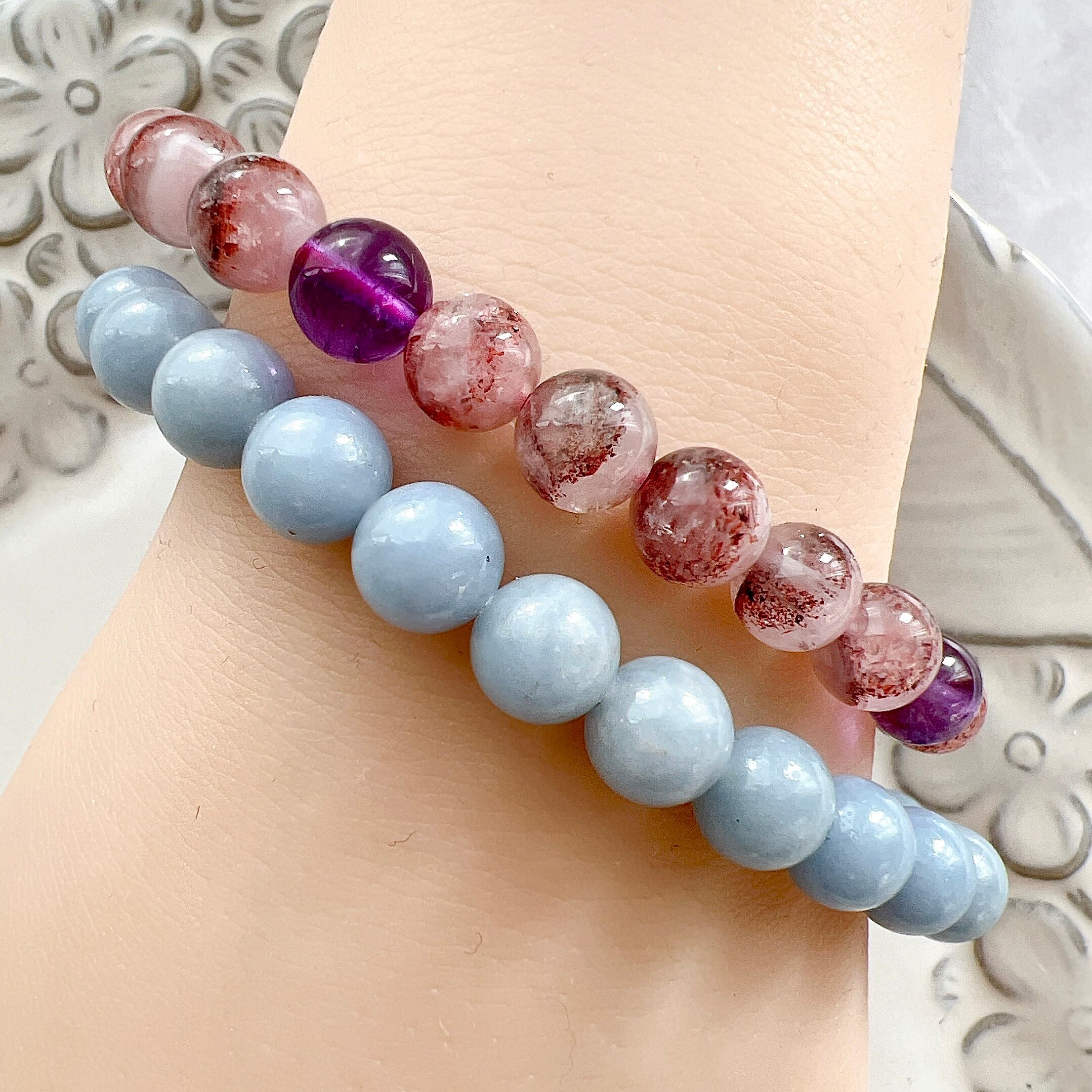 【人間関係・癒し】優しいパウダーブルー高品質☆エンジェライト8mm珠ブレスレット