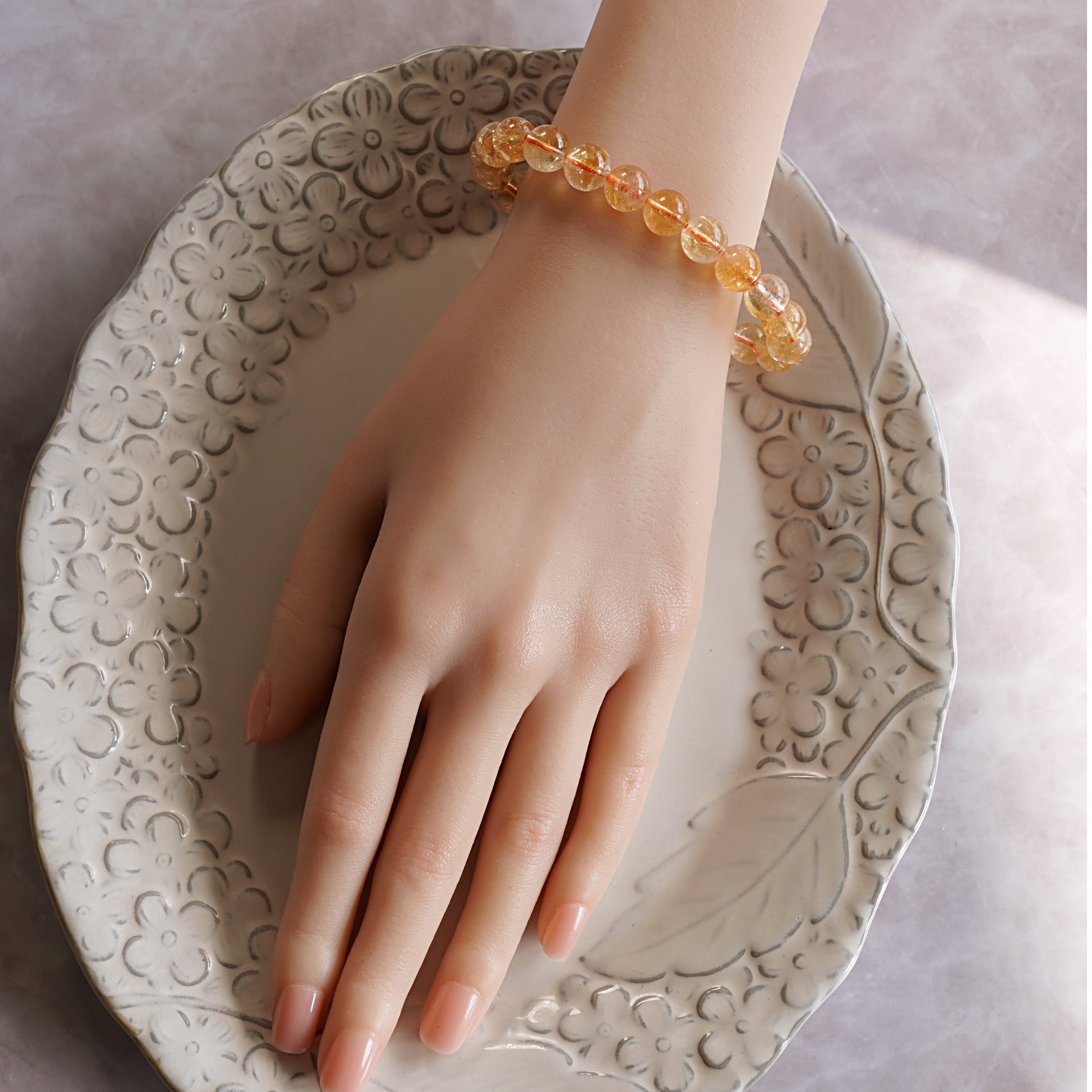 元気が貰えそうなビタミンカラーのシトリン9mm珠ブレスレットをセレクトしました。